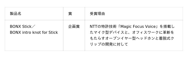 国内最大級のオーディオ ビジュアルアワード「VGP2026」にてNTTの特許技術を搭載した業務用コミュニケーションデバイス「BONX Stick」とオープンイヤー型イヤホンが企画賞を受賞!