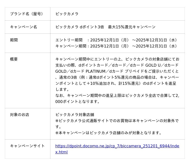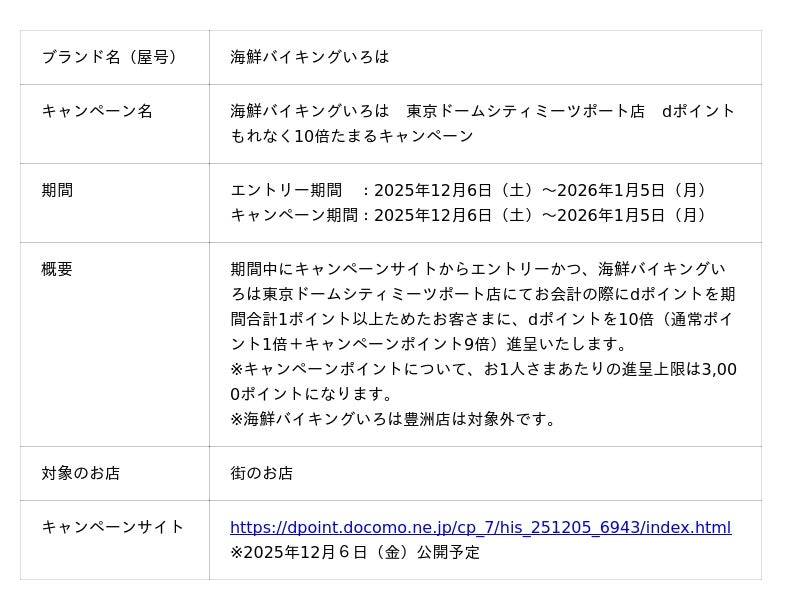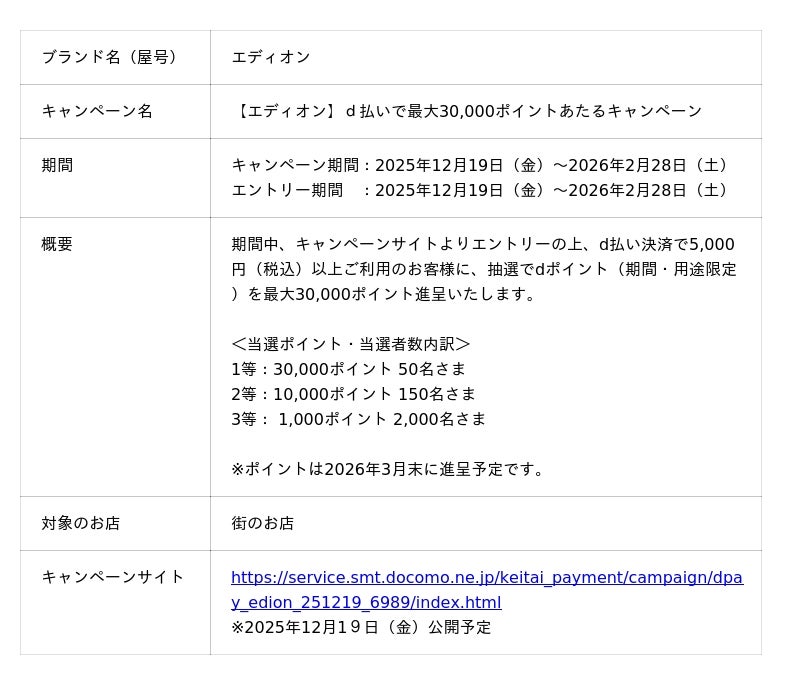 株式会社NTTドコモ(以下、ドコモ)は、「dポイント」「d払い(R)」においておトクなキャンペーンを開催いたします。詳細は、下表のとおりです。