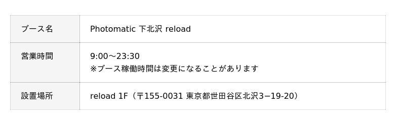 【ご好評につき常設化】Photomatic 下北沢 reload