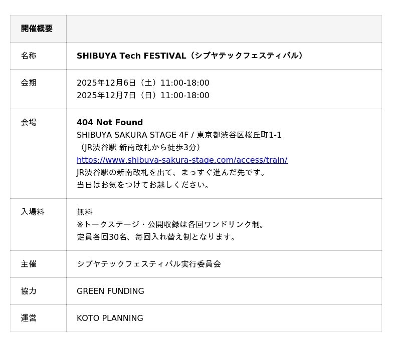 フォーカルポイント株式会社(東京都港区、以下、フォーカルポイント)は、Shokzの国内代理店として、2025年12月6日(土)、12月7日(日)の2日間にわたってSHIBUYA SAKURA STAGEで開催されるガジェットファンの祭典「SHIBUYA Tech FESTIVAL(シブヤテックフェスティバル)」に、Shokzのブース出展、運営をいたします。