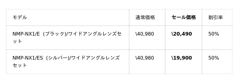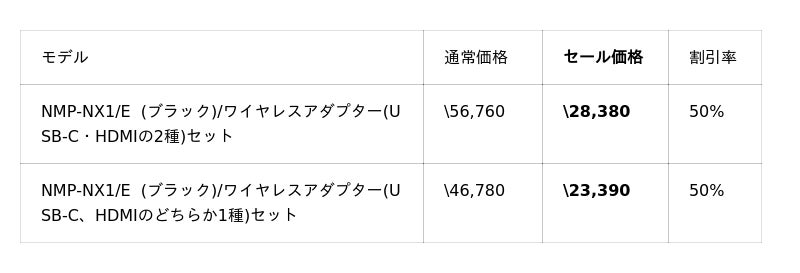 さらに最大約1.5倍に投影できるワイドアングルレンズやワイヤレスで投影可能なHDMIワイヤレスアダプター、スマホに給電しながらNX1に投影できるPDPアダプターなどの周辺機器とNX1のセットなど、映像をより楽しめるセットを多数ご用意しました。