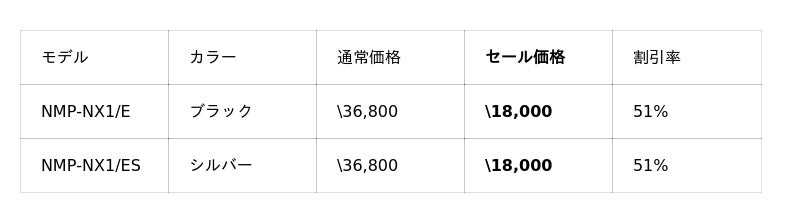 今回のセールでは、小型軽量のプロジェクターNX1を51%OFFの¥18,000で販売。