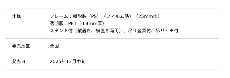 ナカバヤシ株式会社(本社:大阪市中央区、社長:中林一良)は樹脂製フォトフレーム「モダンエッジ フォトフレーム」を全国で2025年12月中旬より順次発売します。