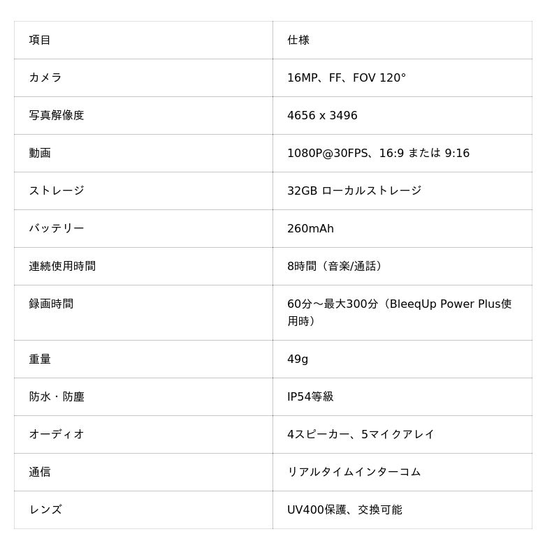 (今後販売予定)を追加することで、連続録画時間は5時間に延長され、オーディオ再生は最大48時間可能になります。長距離のライドや数日間にわたる探検でも、バッテリー切れの心配はありません。