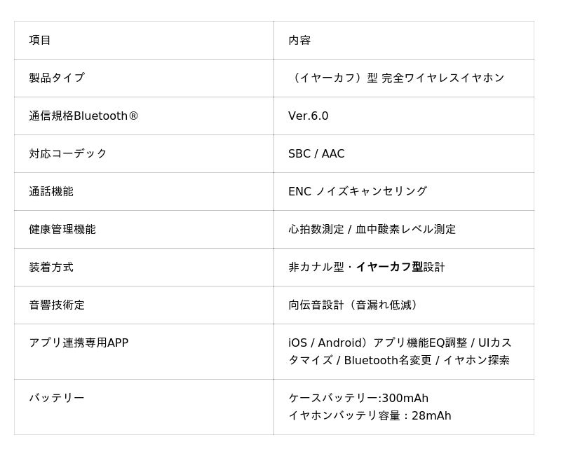 本製品はスマートウォッチの代替を目指すものではなく、「音楽を聴く」「通話する」といった日常行動の延長で、自然に健康データを把握する」という新しい価値を提案します。イヤホンを、次のウェアラブルへと進化させる意欲的な取り組みです。