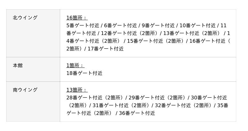 関西国際空港 国際線出発ゲート前の以下30箇所にて、12月26日(金)に設置予定。