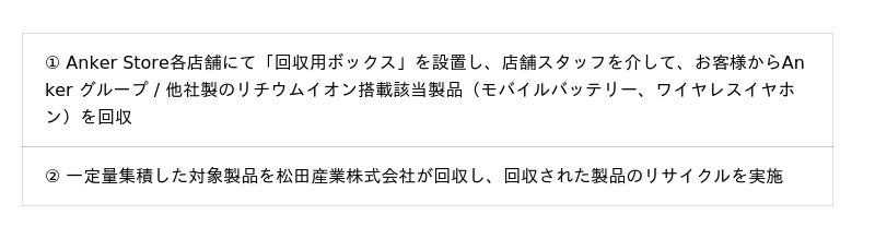 【アンカー・ジャパン】経済産業省委託のリチウムイオン電池搭載製品の回収に向けた実証実験を開始 埼玉県内のAnker Storeにて他社製品を含む対象製品の回収を実施