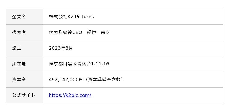 K2 Picturesは、「日本映画の新しい生態系をつくる」ことを方針に掲げ、2023年8月に設立された映画製作会社で、2024年5月に本ファンドを立ち上げ、多くの映画製作に取り組んでいます。