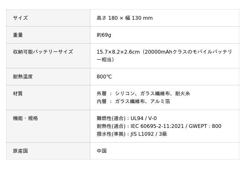 ■ モバイルバッテリー用 燃えにくいケース(GP-FR)