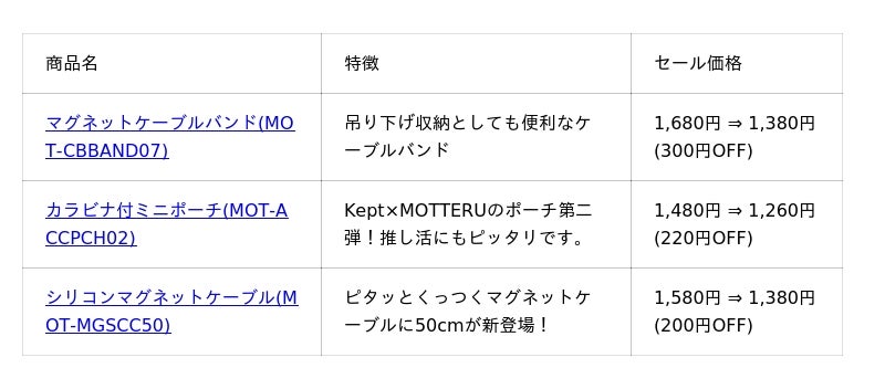 1月3日(土) 9:00〜1月7日(水) 23:59まで開催予定の「Amazon 第1回スマイルSALE」において、MOTTERUの人気アイテムを最大約30%OFFで販売いたします。