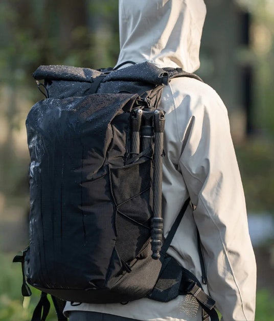 20Lは1.3kg、30Lは1.45kg、40Lは1.6kgの軽量設計です。バックパック本体には、高強度なナイロンブレンド素材を採用。前面の拡張ポケットは防水仕様のポリエーテルTPUコーティングナイロン生地を使用し、水滴や裂けから保護します。