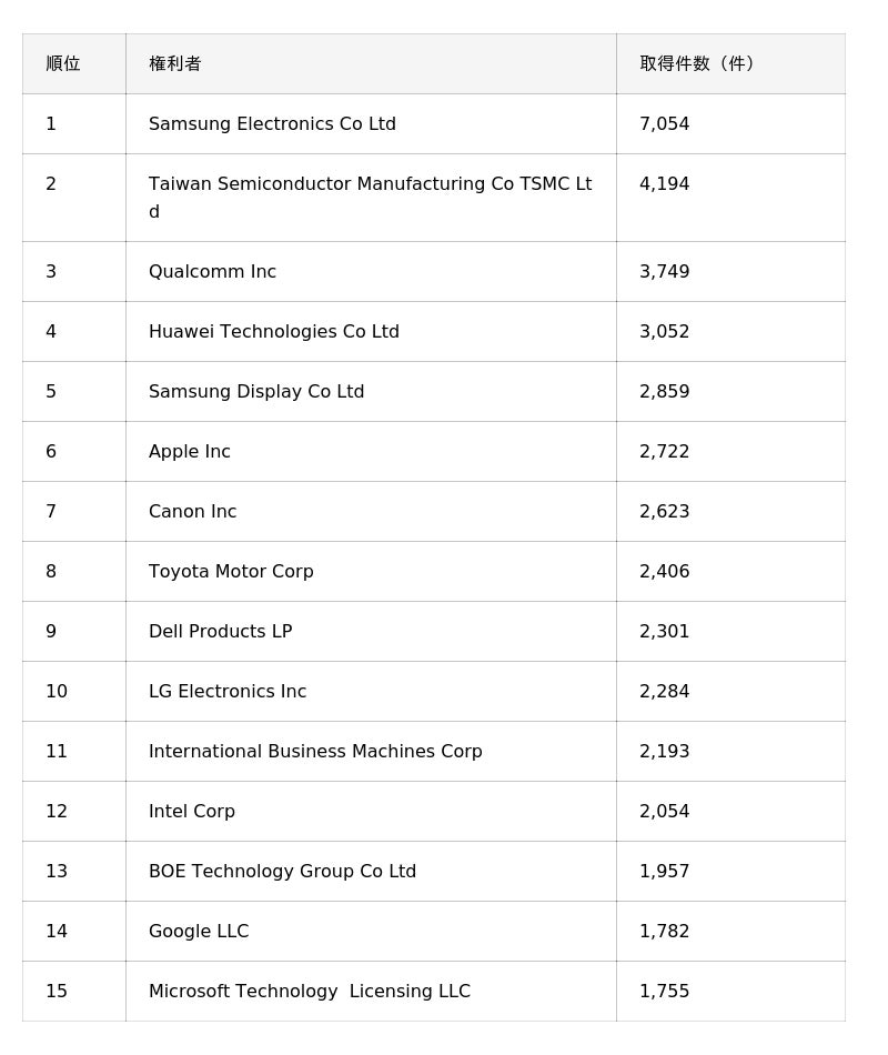 米国特許取得企業ランキングで世界第7位 42年連続で世界10位以内を獲得