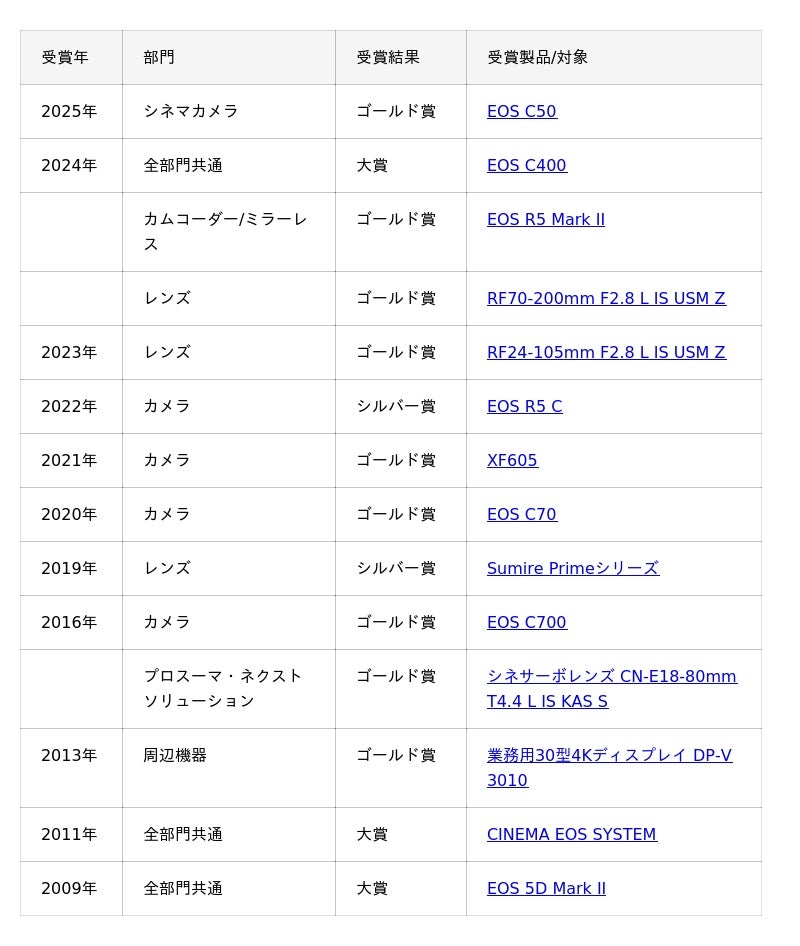 このたび、シネマカメラ部門において「EOS C50」(2025年11月27日発売)がゴールド賞を受賞しました。