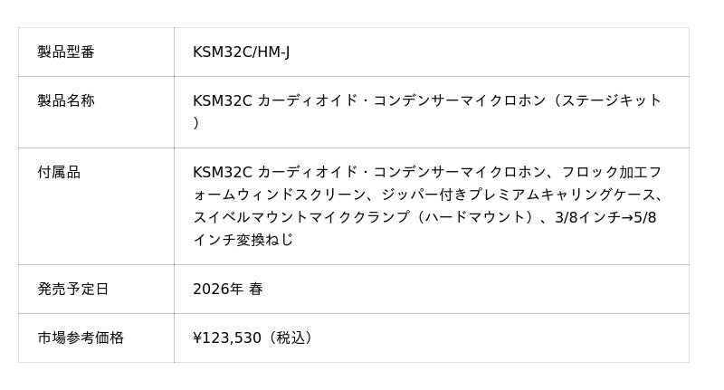 - KSM32C カーディオイド・コンデンサーマイクロホン
