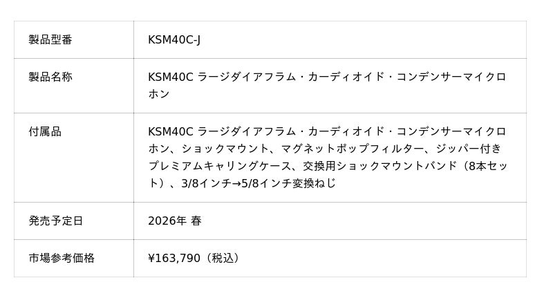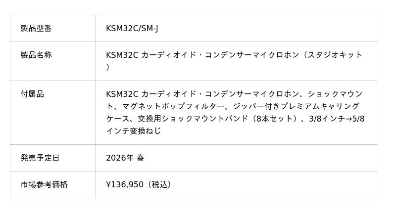 KSMコンデンサーマイクロホンシリーズはアメリカ・カリフォルニア州アナハイムで行われているNAMM 2026(1月22日から1月24日)のShureブース(#15608)にて展示されます。日本での販売開始は今春を予定しています。