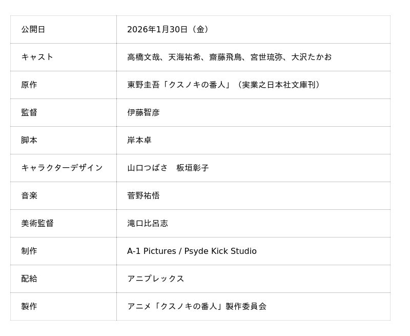共通ポイントサービス「Ponta(ポンタ)」を運営する株式会社ロイヤリティ マーケティング(本社:東京都渋谷区、代表取締役社長:勝 文彦、以下「LM」)は、東野圭吾原作作品の初のアニメーション映画『クスノキの番人』の公開を記念し、2026年1月26日(月)〜3月31日(火)、Pontaポイントや映画のグッズをプレゼントするキャンペーンを実施します。