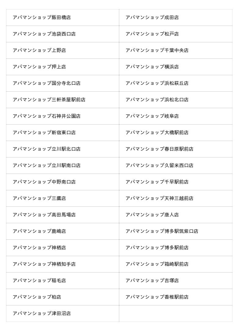 スマホの充電に困った際は上記のアパマンショップにてご利用いただけます。