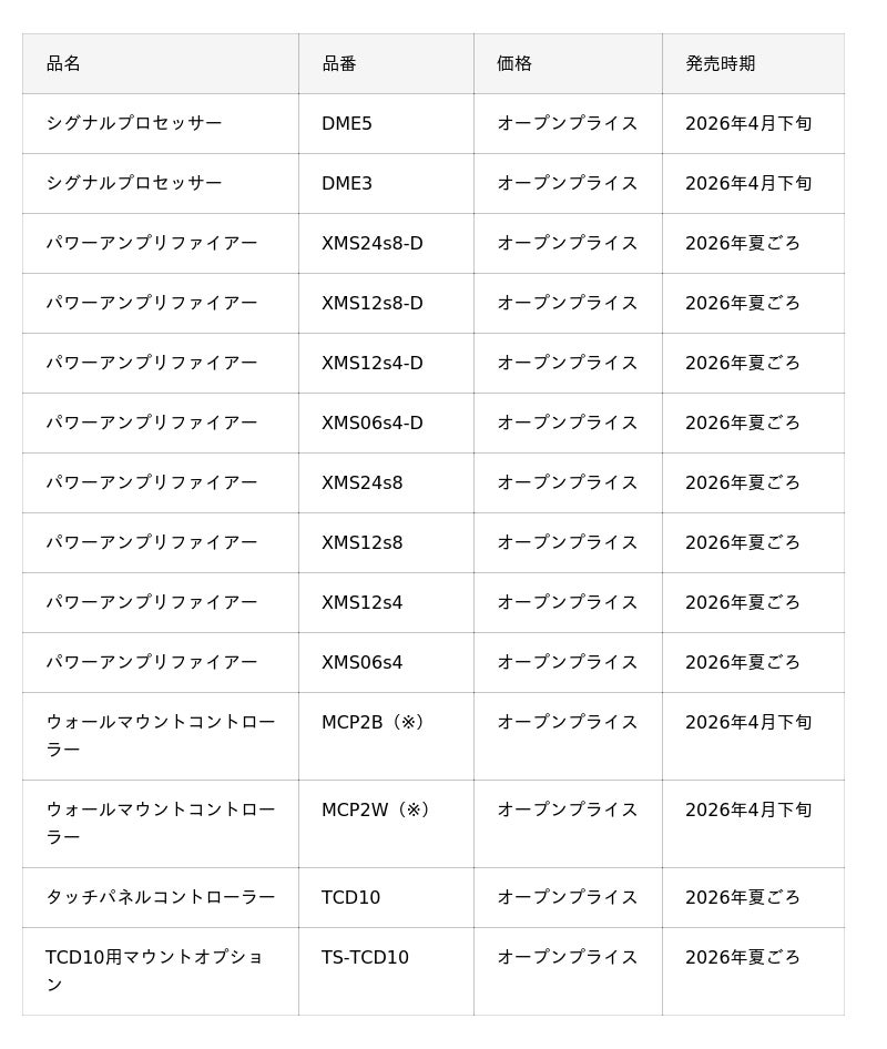 製品情報の詳細は、『DME』『DME3』『MCP2』は2月下旬に、その他は2026年夏ごろ公開予定です。