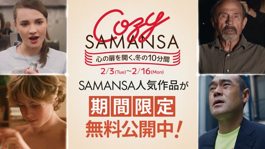 株式会社SAMANSA(本社:東京都渋谷区、代表取締役社長:岩永祐一)は、運営するショート映画配信サービス「SAMANSA」にて、2026年2月3日(火)から2月16日(月)までの期間、冬にオススメの厳選4作品の無料公開と、年間プランが25%お得となるクーポンの販売をする「COZY SAMANSA(コージー・サマンサ)」を開催することをお知らせいたします。