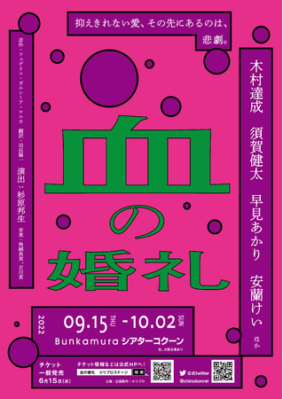 【木村達成、須賀健太、早見あかり、安蘭けい】2022年9・10月上演 愛の悲劇『血の婚礼』新キャスト発表!公演スケジュール、チケット情報詳細公開、アフタートークショーも決定。