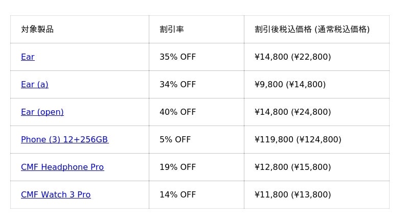 今年は、Nothing史上最多のラインナップが登場。人気のオーディオ製品などが最大40%OFFとなるほか、初めてPhone (3)が特別価格で登場します。