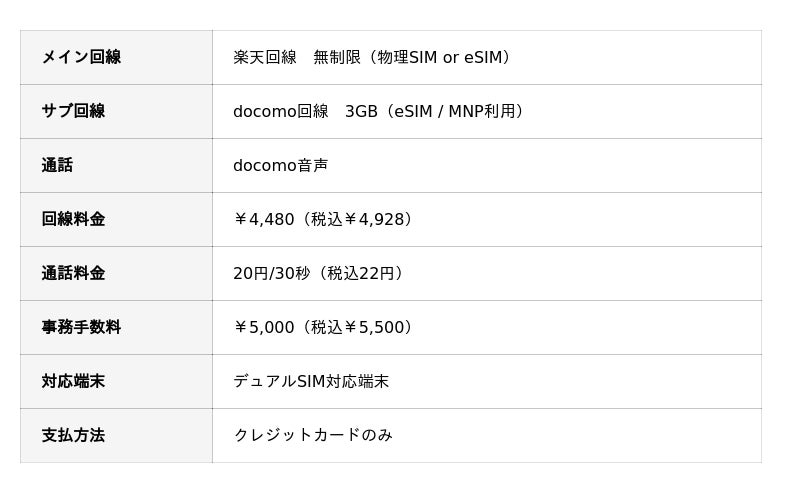 メイン回線は、データ容量を気にせず使える楽天回線の無制限プラン(※2)を提供。