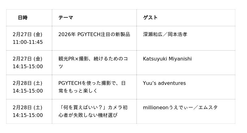 株式会社セキド(本社:東京都港区、代表取締役:大下貴之)が正規販売代理店をつとめる DJI(ディージェイアイ)、日本総代理店をつとめる HASSELBLAD(ハッセルブラッド)と PGYTECH(ピージーワイテック)が、2026年2月26日(木)から3月1日(日)までパシフィコ横浜で開催される、カメラと写真映像のワールドプレミアショー「CP+2026」に出展いたします。