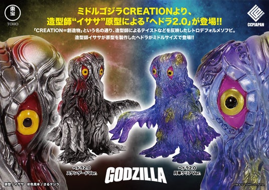 フィギュアメーカーのCCPJAPAN株式会社は、人気特撮作品『ゴジラ』シリーズに登場するヘドラを、レトロデザインのソフビ製で商品化した『ミドルサイズシリーズ ゴジラCREATION ヘドラ 2.0 2種』を全国のホビーショップ、量販店、Webショップにて予約受付をいたします。