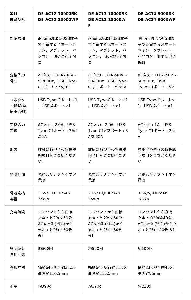 お出かけ時の荷物が少なくなる!USB Power Delivery対応のAC一体型モバイルバッテリー 3モデルを新発売