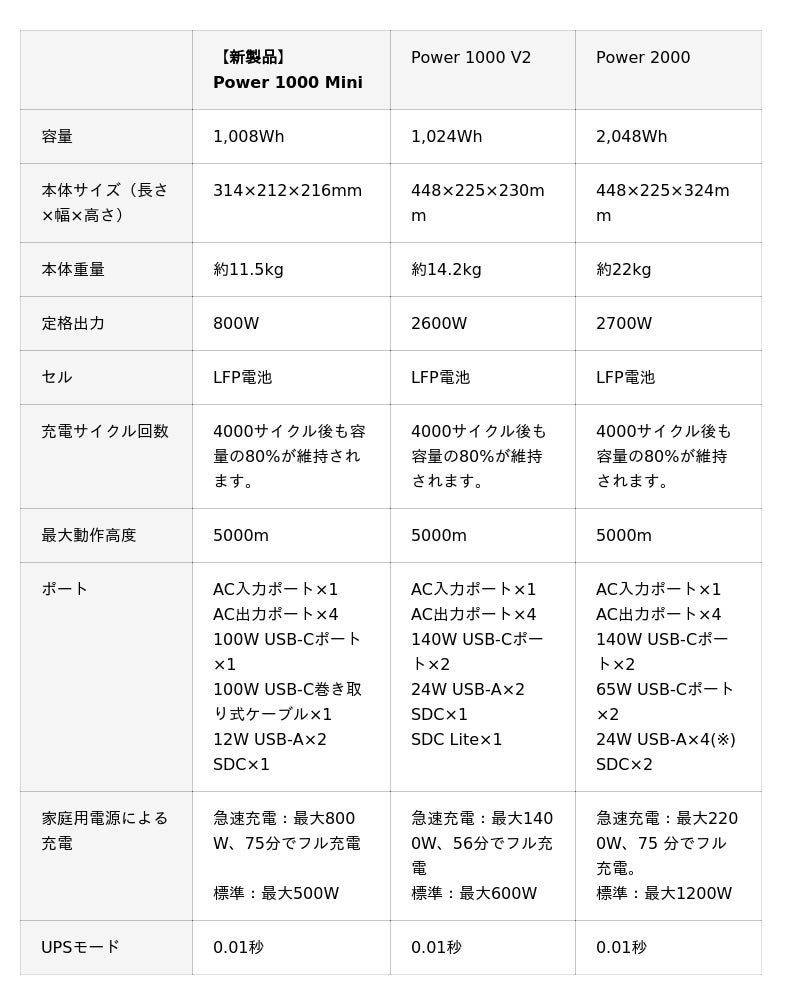 ※従来機の Power 1000 V2(1,024Wh)は約14.2kg