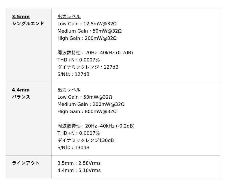 (Low / Medium / High)の3段階Gain機能により、高感度なイヤホンから高い駆動力を必要とするフルサイズヘッドホンまでの、理想的で幅広いコネクションを叶えることができます。