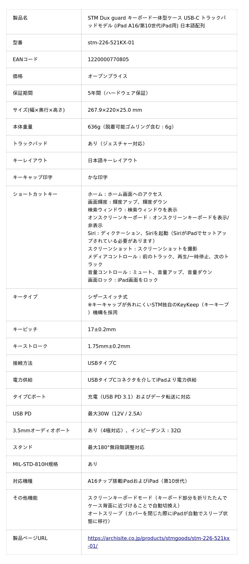 デジタルデバイスの保護にスマートな選択を提供するオーストラリアブランド「STM goods」の国内販売総代理店である株式会社アーキサイト(本社:東京都台東区、代表取締役:林 庫次郎、以下アーキサイト)は、GIGAスクール構想や高負荷・高耐久を要する業務現場を見据えた設計の新製品「STM Dux guard キーボード一体型ケース USB-C トラックパッドモデル (iPad A16/第10世代iPad用) 日本語配列」を2026年2月17日(火)に発売します。