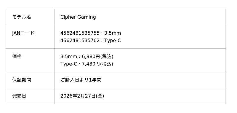 株式会社伊藤屋国際は、Hi-Fiオーディオブランド、EarAcoustic Audio(イヤーアコースティックオーディオ)の『Cipher Gaming』を2月27日(金)より販売開始いたします。