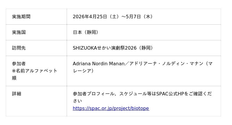 BIOTOPE 実施プログラム詳細(SHIZUOKA せかい演劇祭 2026内)