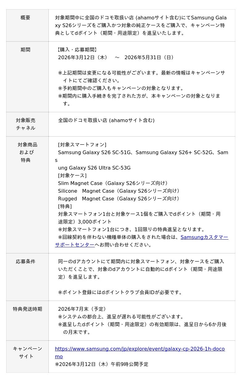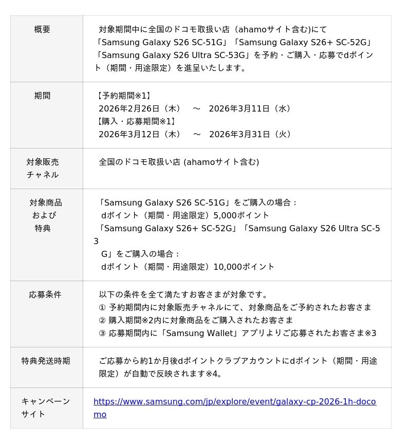Samsung Galaxy S26 Ultra SC-53G発売記念 購入キャンペーン1.