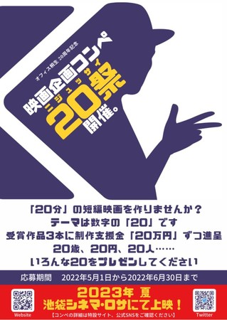 株式会社オフィス桐生は、設立20周年イベントとして短編映画企画コンペ「20祭」を開催します。コロナ禍で映画制作を断念した人、映画監督を目指す学生、テーマ20に名案ひらめいた人……など、プロアマ問わず個性豊かなクリエイターからのエントリーをお待ちしています。一緒に映画を制作して映画業界を盛り上げましょう!