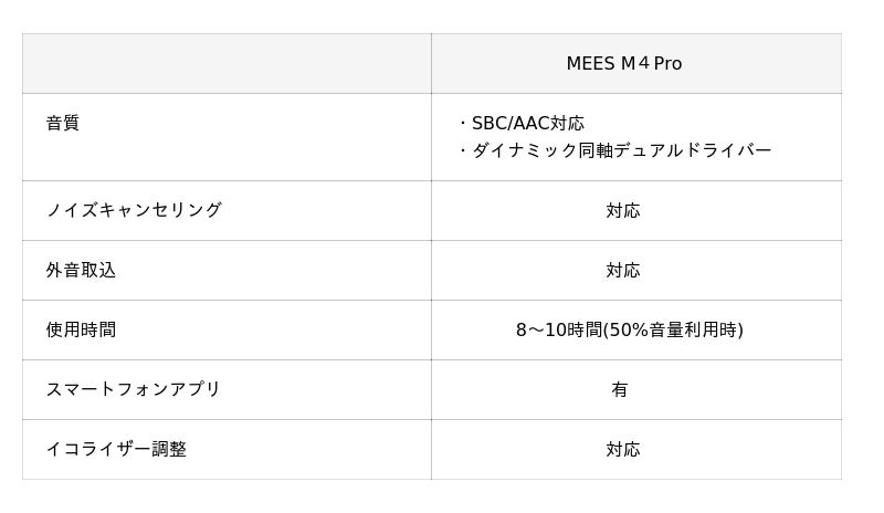 また本製品は、前モデル「MEES M2 Pro」から搭載されていたノイズキャンセリング機能や外音取