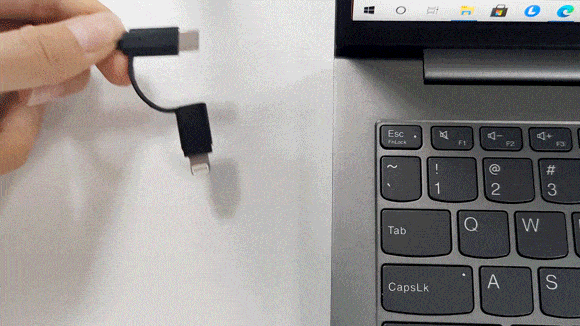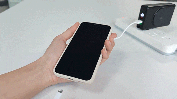 2in1Type-C&Lightningケーブルと2つのUSB-Aポートも搭載しているため、4つの端末を同時に充電可能!PD・QC3.0急速充電に対応しているため、iPhone12ならフル充電までわずか1.5時間!