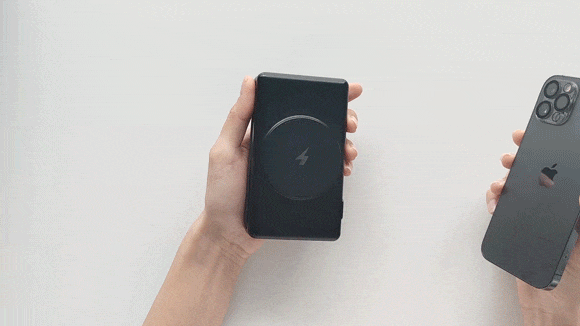 Magsafe技術を採用しており、Magsafe対応のスマホにピタッと吸着!充電中にスマホが外れて落ちてしまうこともなく、持ち運びラクラク!