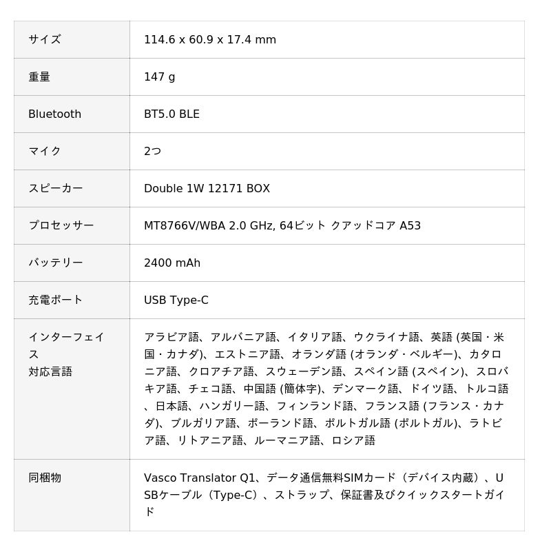 製 品 名: Vasco Translator Q1(ヴァスコ・トランスレーター・キューワン)