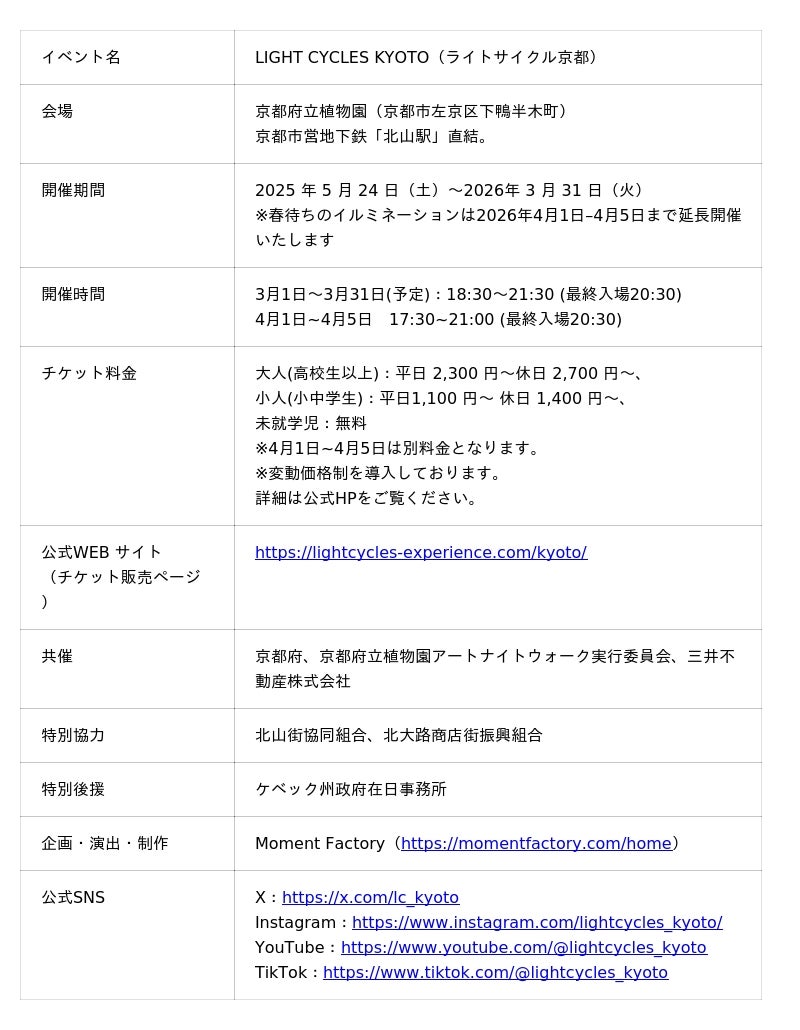 ■京都府立植物園100周年記念イベント「LIGHT CYCLES KYOTO」について
