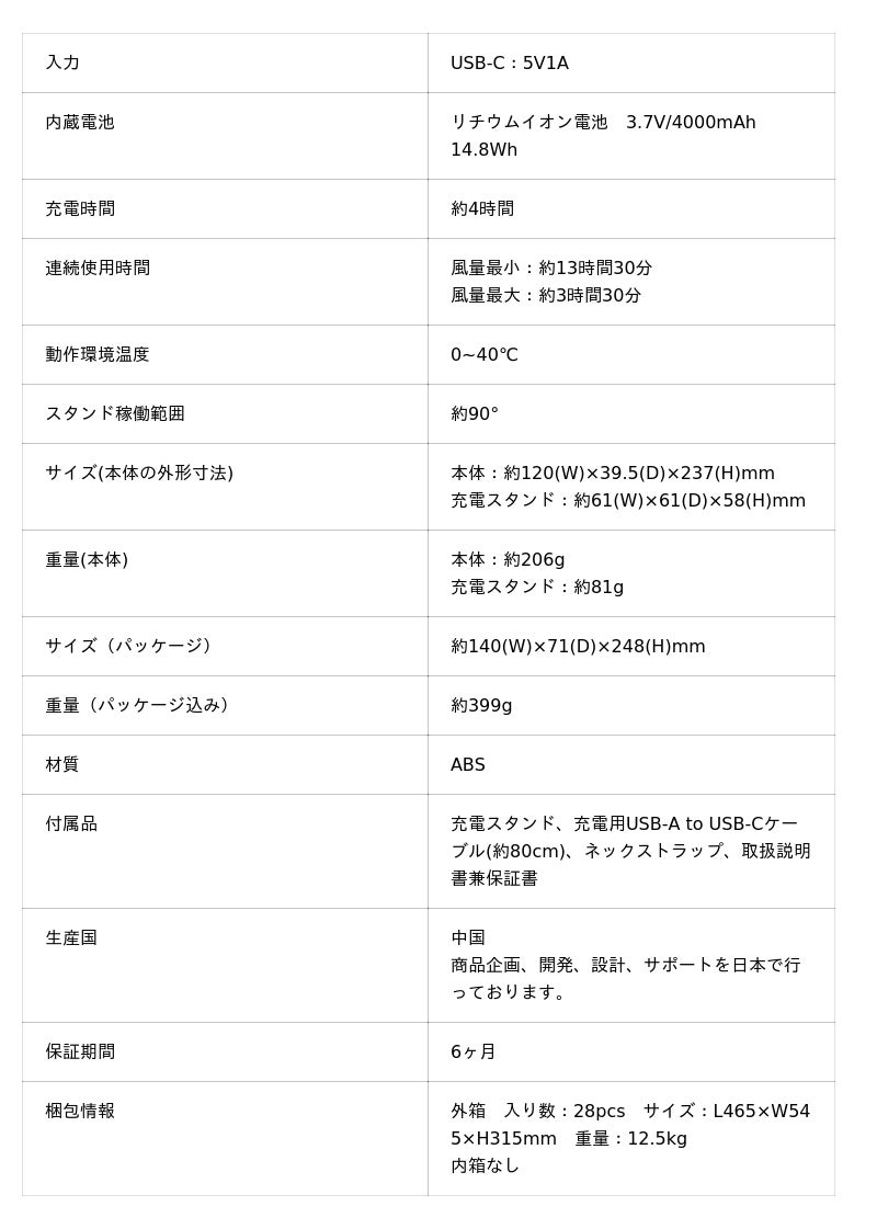 最大で13.5時間の連続使用が可能。(※使用風量により異なります、最小3.5時間)一日中涼しさが続くスタミナ設計です。