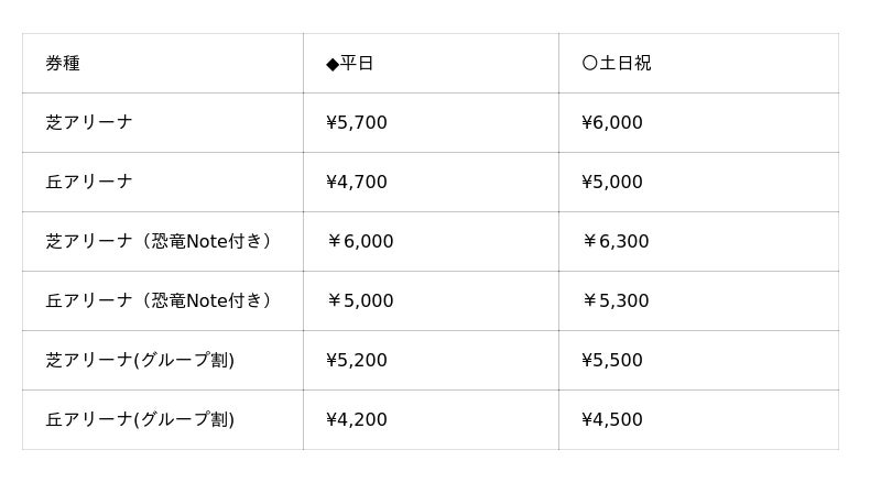 ※恐竜Note付きチケットは定価での販売となります。グループ割は併用不可。