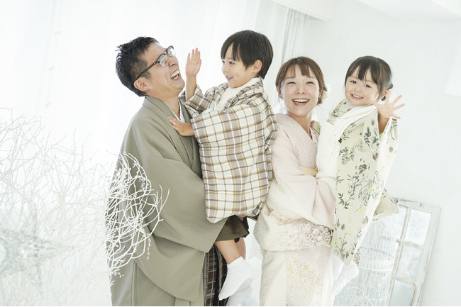 特別な日には、ご家族揃った和装撮影も。パパママ和装着付け(衣装込み)、お着物でお宮参りや七五三を叶えるレンタルも可能なので、水天宮へのお参りにもぴったりです。
