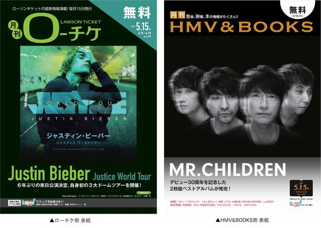 【本日発行】フリーペーパー『月刊ローチケ/月刊HMV&BOOKS』5月15日号の表紙・巻頭特集は「Justin Bieber」&「Mr.Children」!