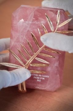 5年前、同映画祭70周年の際には、ショパールのハイジュエリーアトリエにおいて、葉と茎部にダイヤモンドを散りばめた記念すべきパルム・ドールが制作されました。また、2014年以降、フェアマインド認定を取得したエシカルゴールドでパルム・ドールは制作され、世界初、且つ唯一無二の人と環境に配慮したエシカルなトロフィーとなっています。さて、この記念すべき特別なパルム・ドールの栄冠に輝くのは... !?