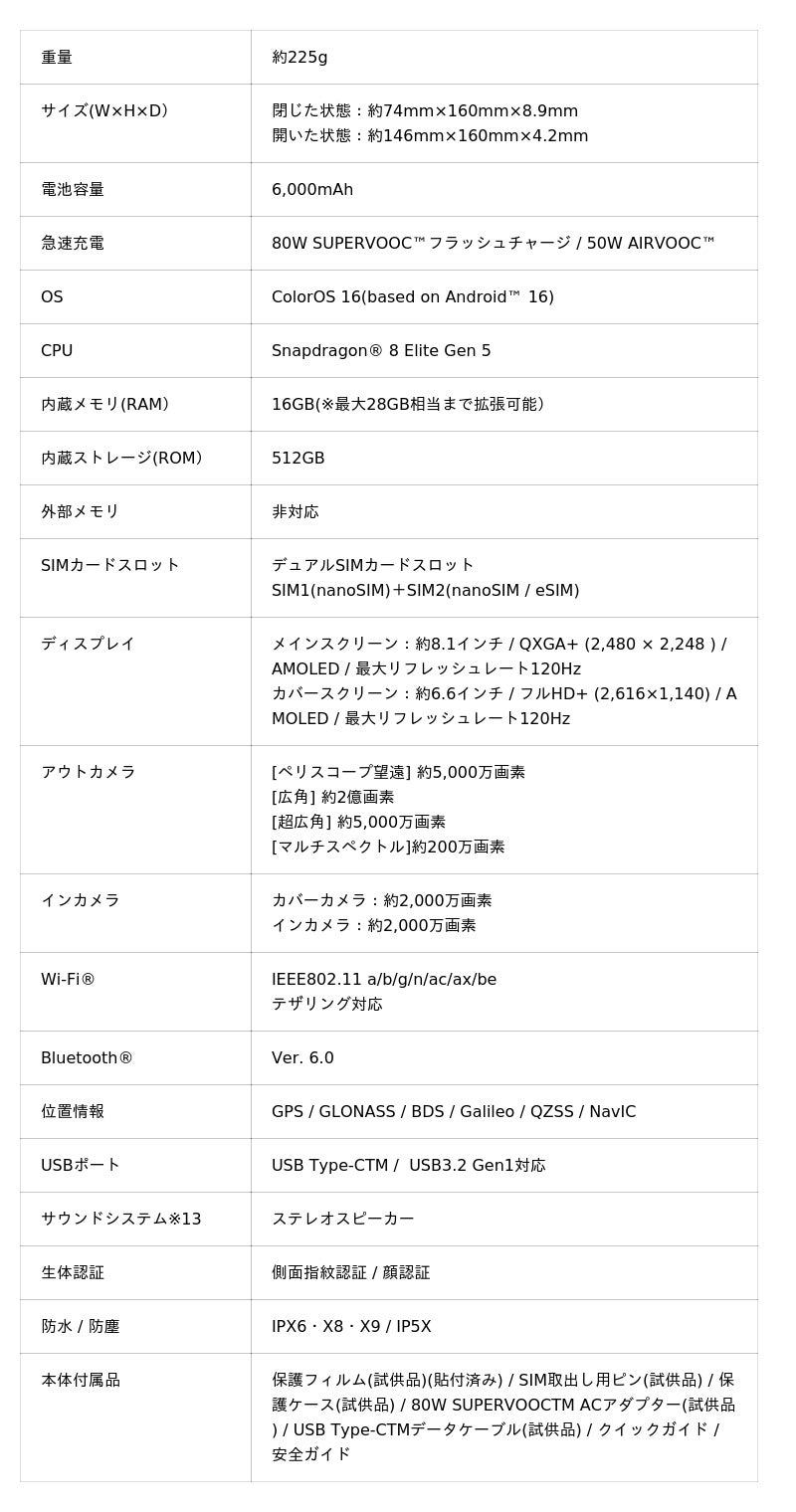 OPPO Find N6をご購入の方々には、万一保護フィルムに傷などがついた場合も、無償で貼り替えるサービスをご利用いただけます※12。その他、OPPO Find N6が正式発売された国や地域で、メンテナンス・修理・無料のソフトウェア更新をご利用いただけるOPPOグローバル保証や、メーカー保証外の有償修理でも費用が15%割引になるなどのOPPO Find N6プレミアムサービスをご利用いただけます。詳細は「OPPO Find N6プレミアムサービス」の公式サイト:https://support.oppo.com/jp/premium/find-n6-series/にてご確認ください。