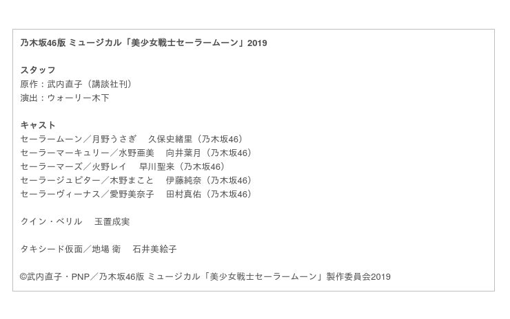 3.乃木坂46版 ミュージカル「美少女戦士セーラームーン」2019