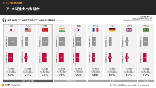 主要9カ国 アニメ視聴者割合とアニメ関連支出者割合(2025年)