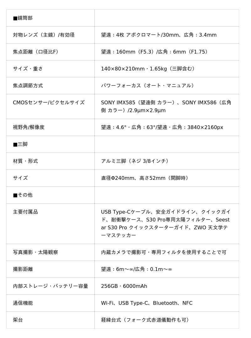 Seestar S30 Pro 製品特徴